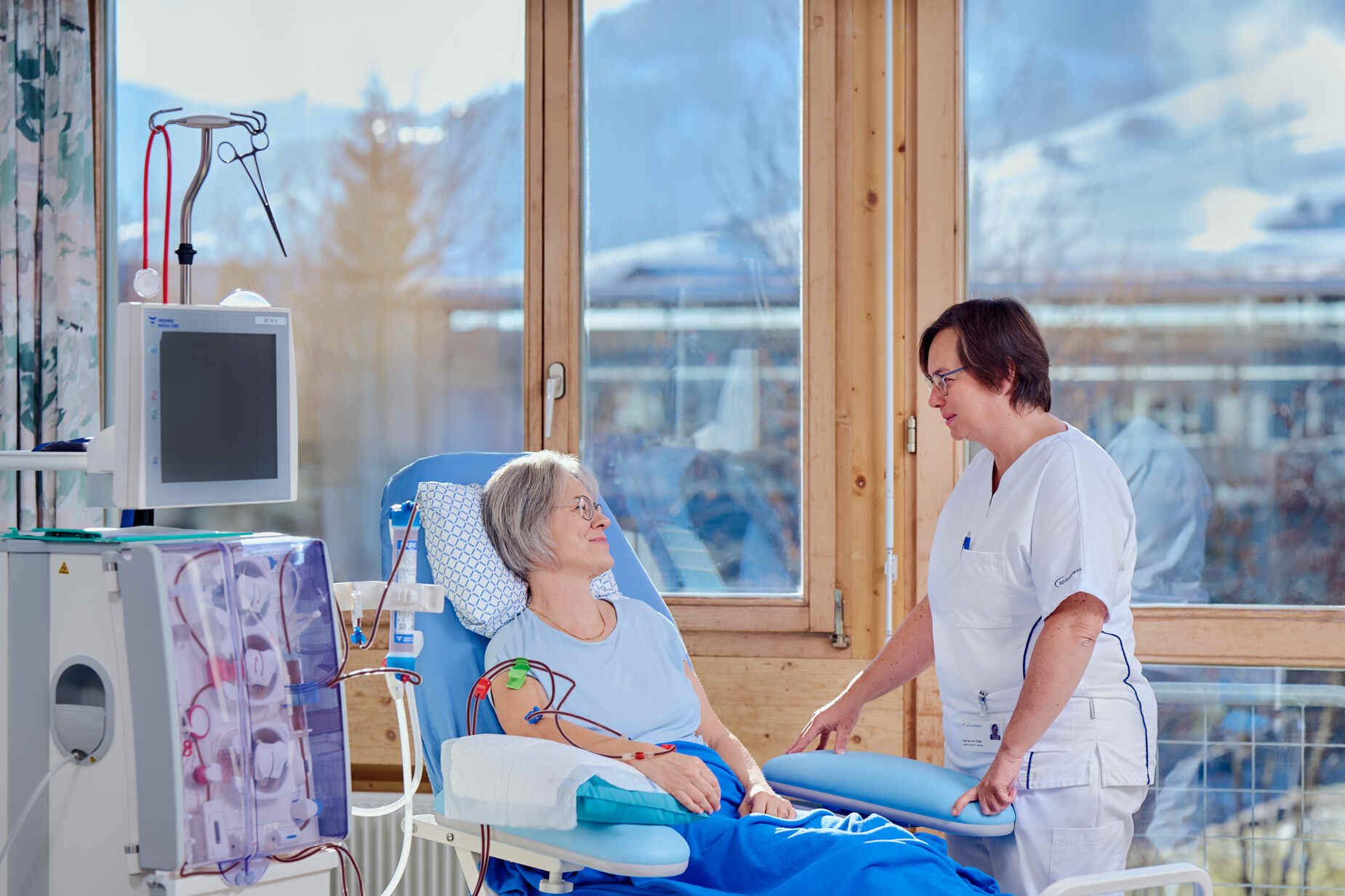 Wir bieten eine fachlich kompetente Betreuung durch besonders geschulte Pflegende und eine Fachärztin resp. einen Facharzt für Nephrologie. In Zusammenarbeit mit dem Inselspital werden Peritonealdialyseverfahren angeboten.